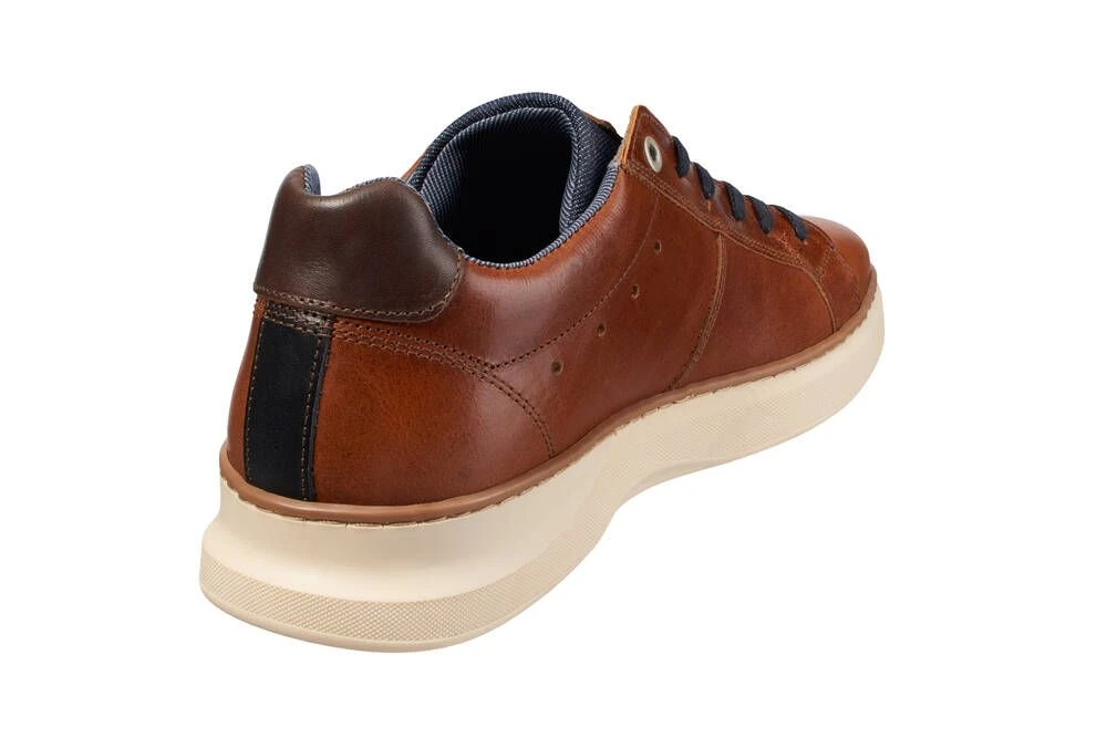 Nahkapintaiset tennarit vaalealla pohjalla.