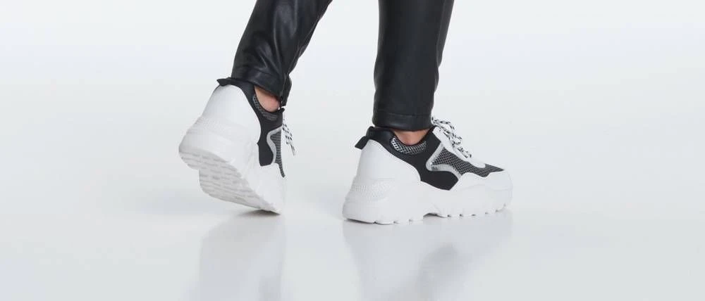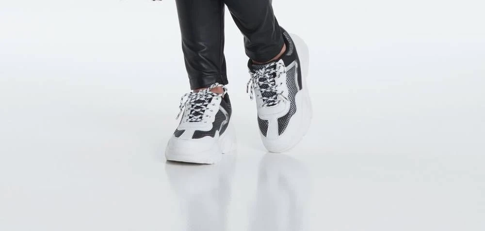 Nauhalliset sneakerit näyttävän paksulla pohjalla sekä hopeisilla tekstiiliyksityiskohdilla.
