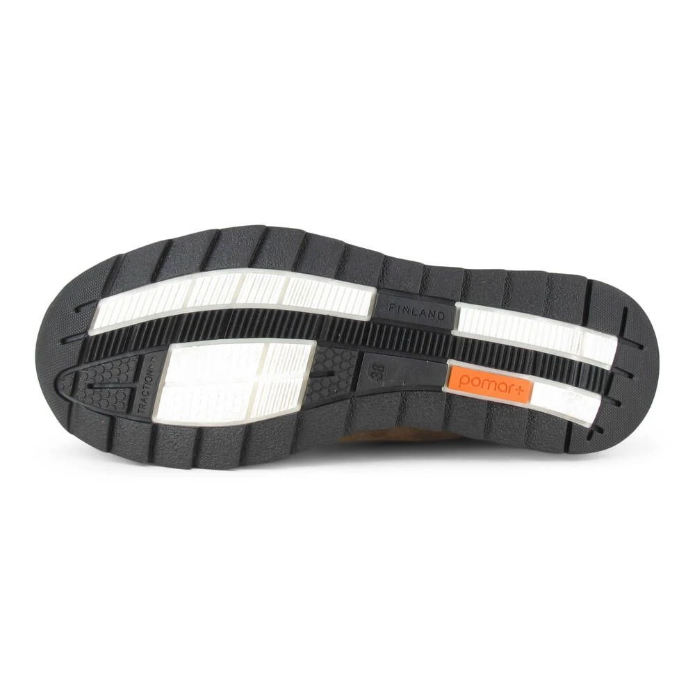 Naisten Aino Zero Waste -sneaker likaa ja kosteutta hylkivällä mokkanahkapäällisellä. Kenkä on valmistettu Zero Waste -ylijäämänahoista. Kengässä on irrotettava muotoiltu pohjallinen sekä kulutusta kestävä Pomar Traction -pitopohja.