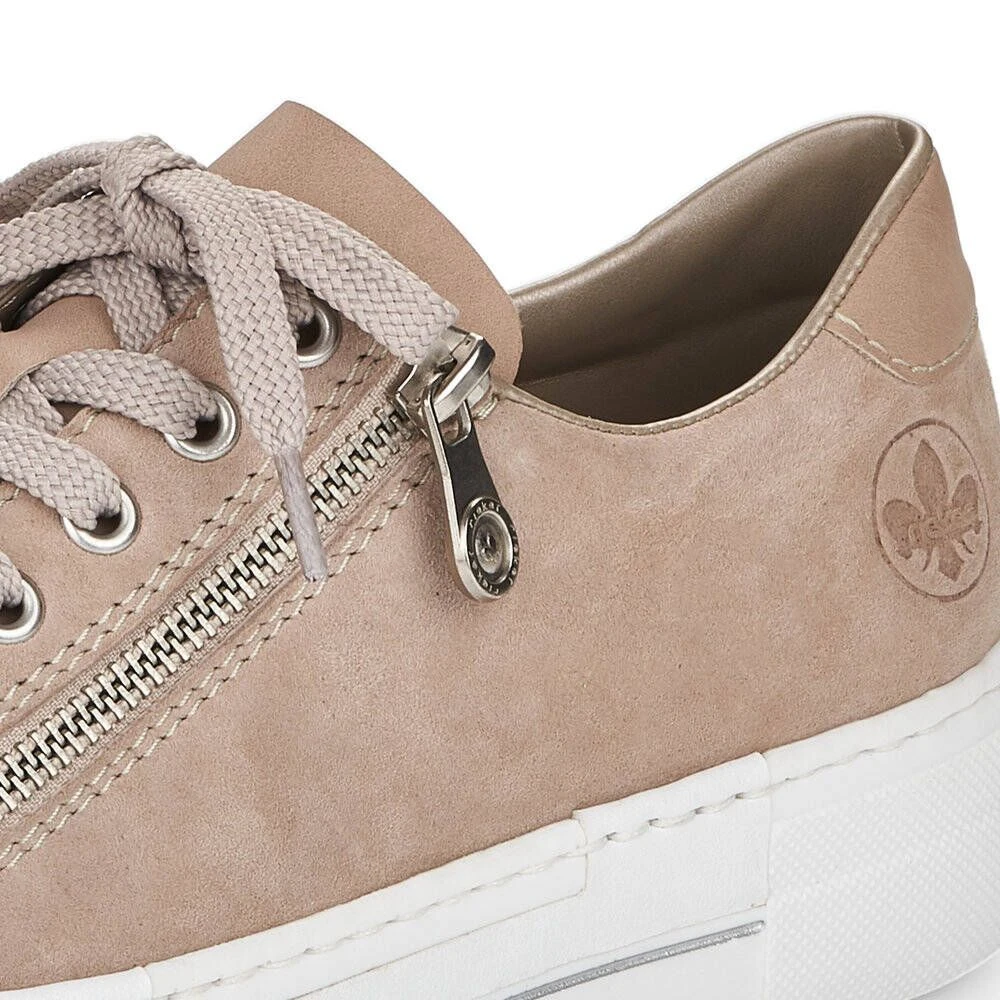 Naisten mokkanahkaiset kävelykengät nauhakiinnityksellä. Kengissä on vetoketjut ulkoreunassa sekä Memosoft-pohjalliset.
