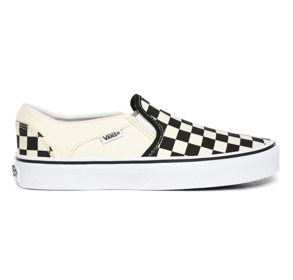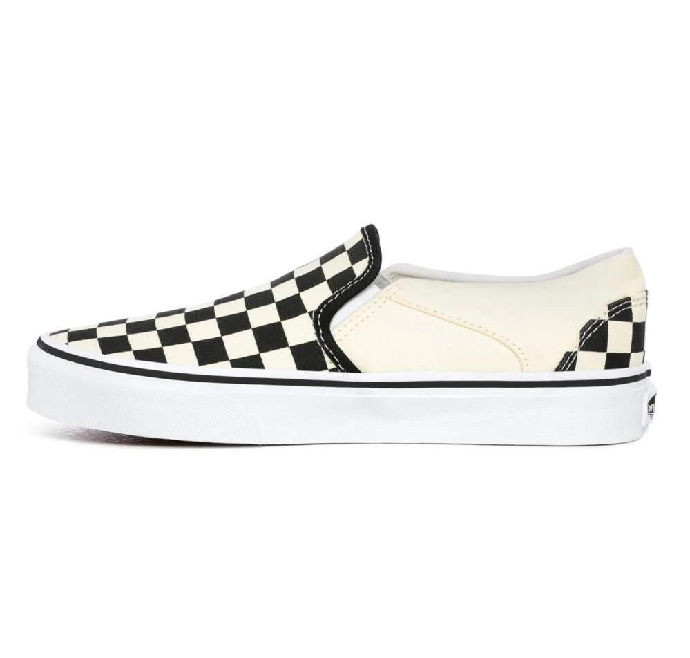 Vansin rennot slip-on tennarit ruutukuosilla. Sivuilla olevat venykkeet helpottavat tennareiden jalkaan pukemista.
