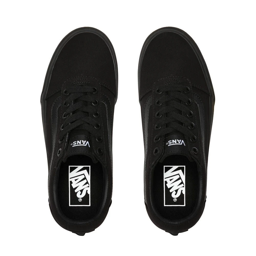 Tyylikkäät kokomustat tennarit paksulla ja tukevalla kumipohjalla sekä kätevällä nauhakiinnityksellä.